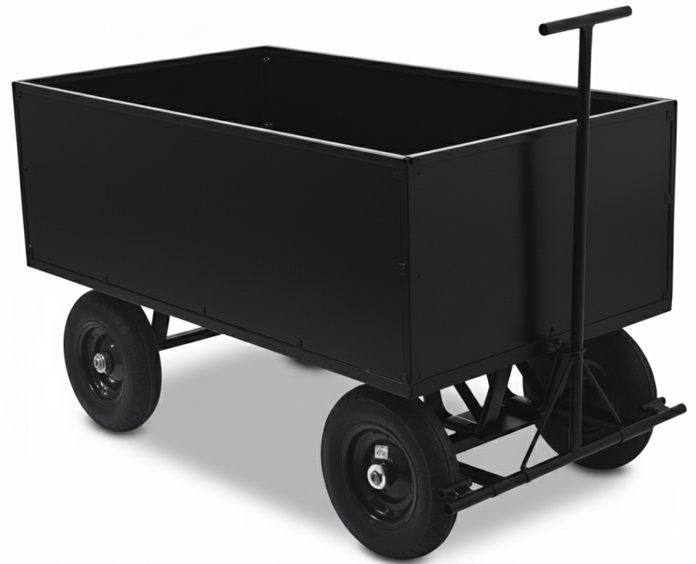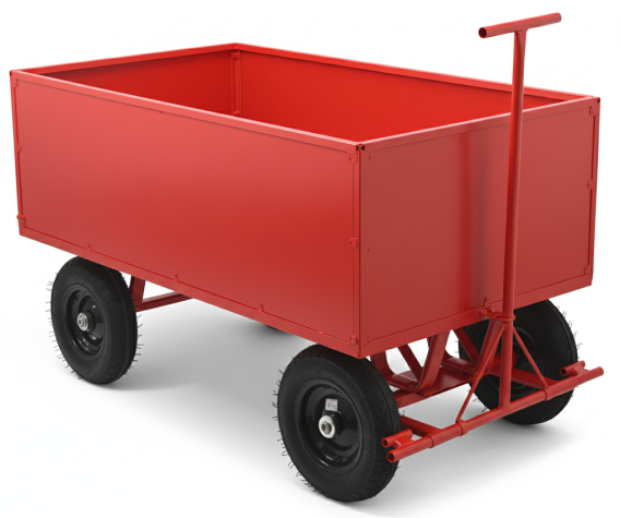 Composto por 4 rodas aro 3.50-8 eixo 1" e rolamento rolete