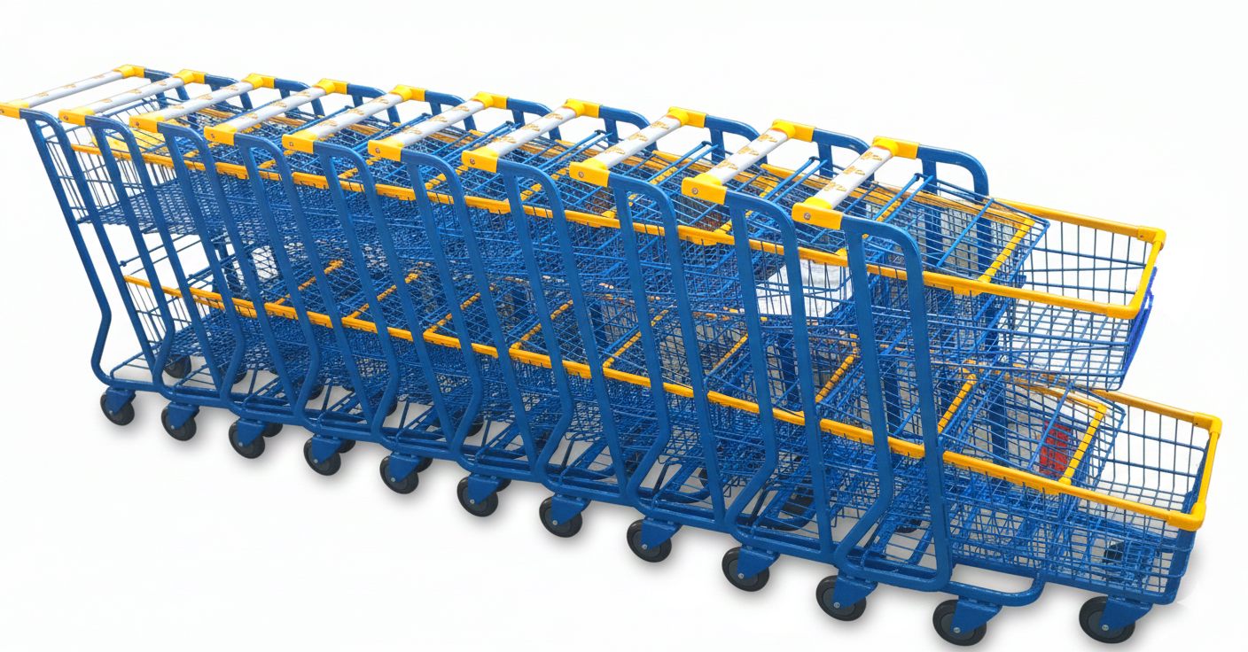 Com batente limitador para facilitar encaixar e desencaixar um carrinho do outro