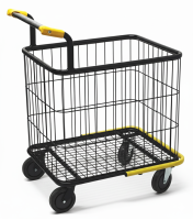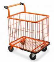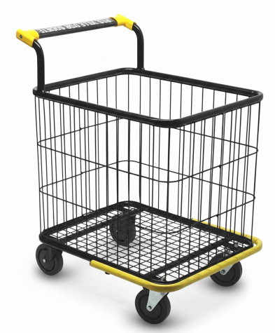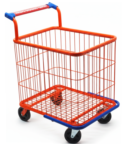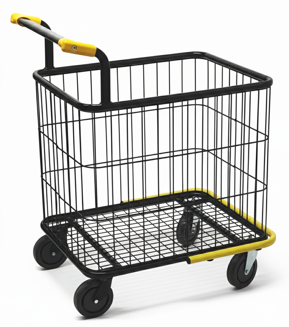 Na dianteira 2 rodízios giratórios e traseira sapata fixa