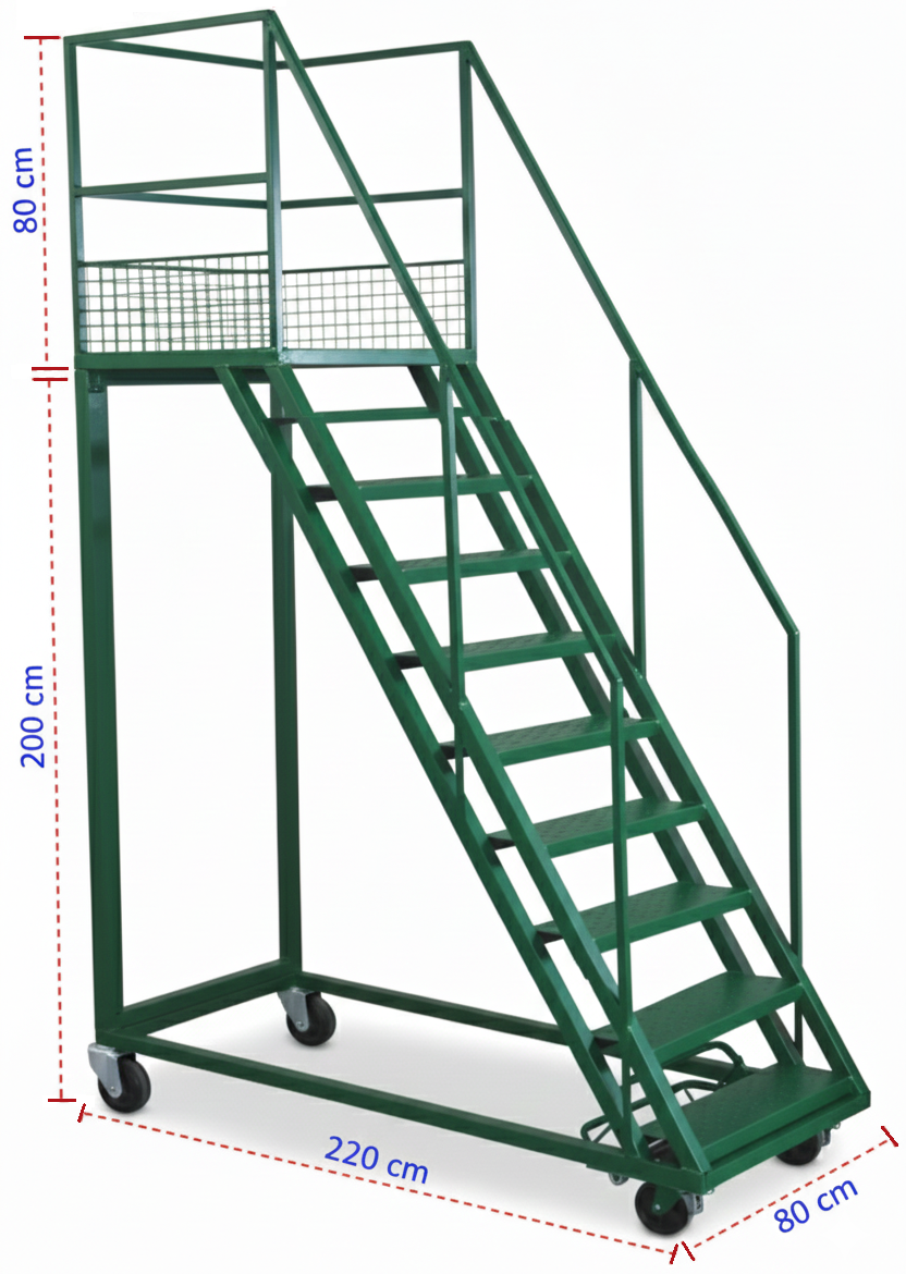 CARRINHO ESCADA MANUTENÇÃO 4 RODAS (2.00m)