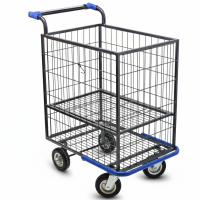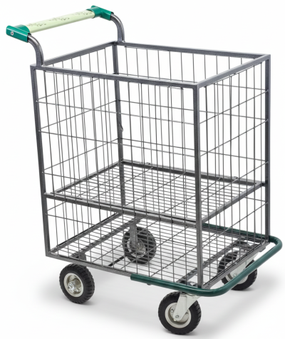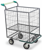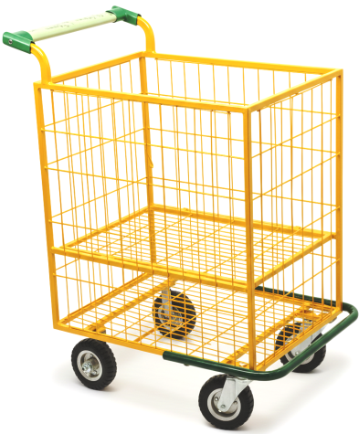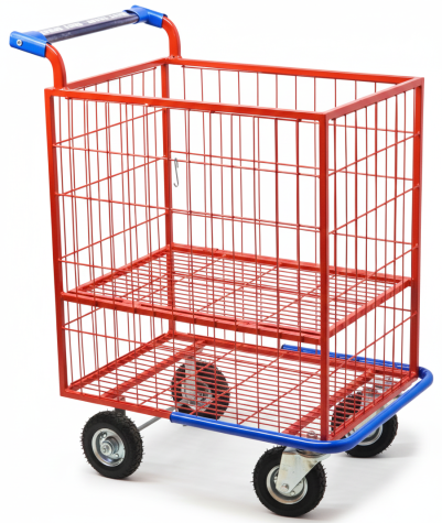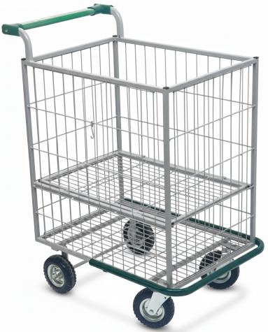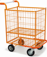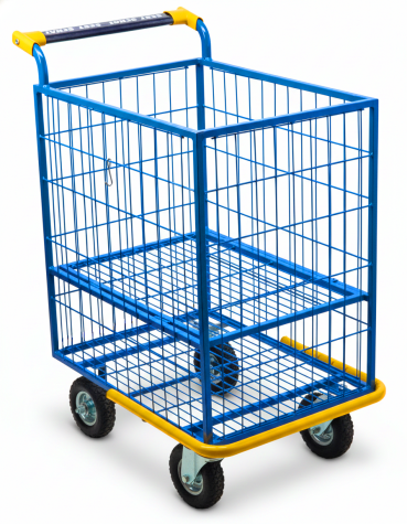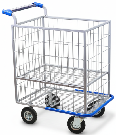 Grade divisória central com abertura horizontal, tendo como usar o carrinho com a grade aberta ou fechada.